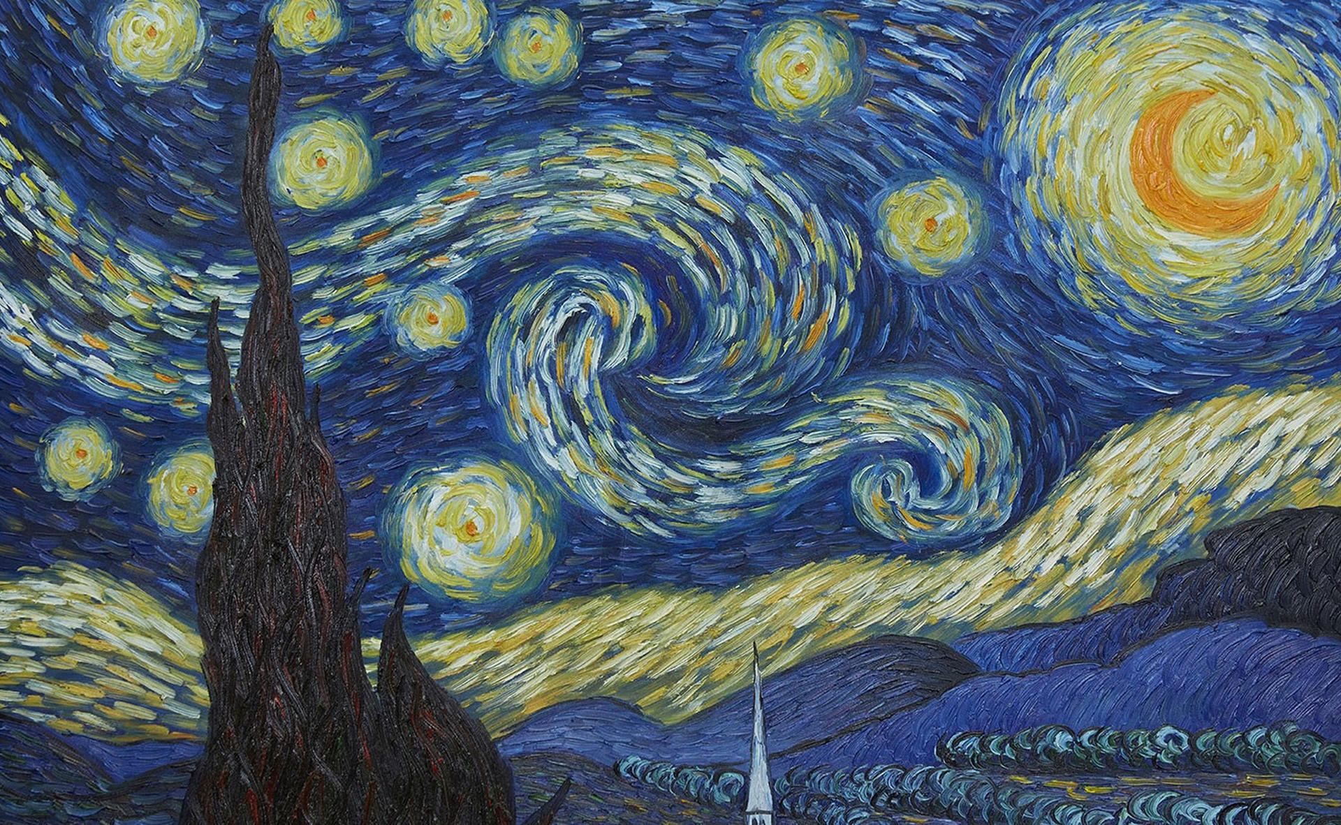 반고흐의 예술은 그의 내면세계와 정신적 고통을 반영합니다. 그는 정신적인 문제와 가난을 겪으면서도 예술을 추구하는 열정을 잃지 않았습니다. 그의 정신 건강은 안정적이지 않았고, 이로 인해 그의 삶은 고통스러운 순간들로 가득했습니다. 그러나 반고흐는 그 고통을 예술적 창조로 전환했으며, 그의 작품은 그의 내면 감정과 상상력을 표현한 것으로 기억됩니다. 그의 대표작 중 하나인 "별이 빛나는 밤에"는 그의 정신적 고통과 예술적 열정의 결합을 잘 나타내는 작품입니다. 이 작품은 밤하늘과 별들을 화려하게 그려냄으로써 우주의 신비를 표현하고 있습니다. 그러나 이 작품은 반고흐의 내면에서 나오는 갈등과 고통도 함께 담고 있습니다. 그의 무서운 정신적 상태를 나타내는 마치 휘황찬란한 밤하늘과 별들의 뒤로 가려진 어두운 집의 형상은 그의 내면의 갈등을 상징적으로 보여줍니다. 사람들과의 관계와 영향 반고흐는 그의 작품뿐만 아니라 사람들과의 관계에서도 중요한 영향을 받았습니다.